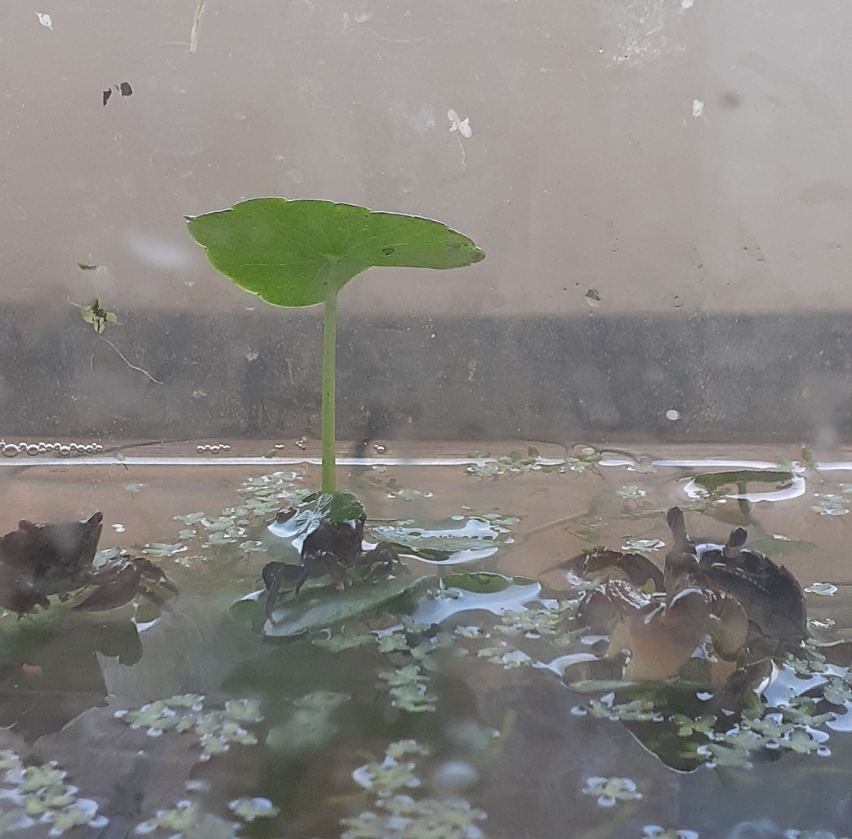 タニシ…殻にこもりっぱなしでほとんど動きませんが、暖かくなると活動を始め、すぐに爆増。それでもゼロまで駆除しないのは、やはり成長と繁殖の速さのおもしろさからです。