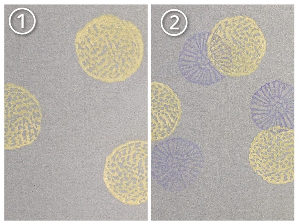 はんこを重ねて捺すときは、レモン色や明るいグレーなど、淡い色から先に捺すのが鉄則です。
