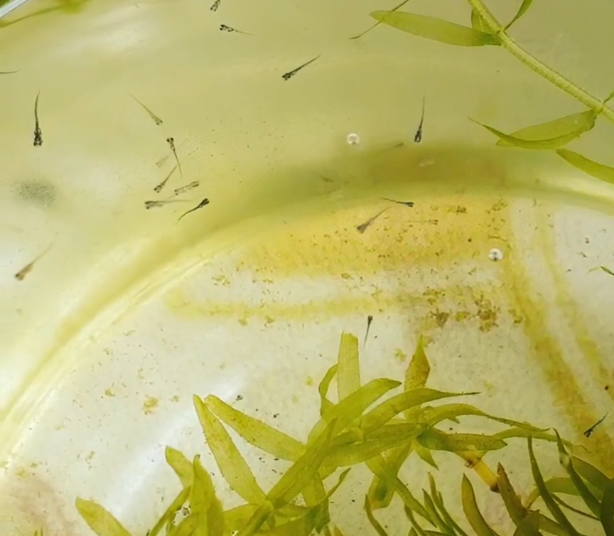 1日に何回、生存確認点呼をしたことか…。私の心配をよそに、翌日も、また次の日も、稚魚は元気に水面近くを泳いでいました。